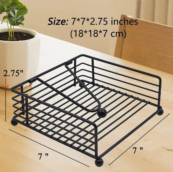 Características -Color: negro -Material: hierro -Tamaño: 18,00 x 17,60 x 6,80 cm/7,07 x 6,92 x 2,67 pulgadas - Material metálico: el servilletero de mesa está hecho de un material de hierro fuerte, resistente al desgaste y a la deforma y duradero. - Forma cuadrada: la forma cuadrada del servilletero es simple y elegante, y añade un toque de estilo a tu cocina o comedor. - Gran capacidad: el dispensador de servilletas puede contener varios rollos de toallas de papel, lo que reduce la frecuencia recarga, lo que lo hace cómodo for el uso diario. - Fácil de usar: el servilletero es fácil de usar y permite reemplazar fácilmente las toallas de papel, lo que ahorra tiempo y esfuerzo. - Multiusos: el servilletero se puede utilizar en varios entornos, como restaurantes, cocinas y baños, lo que lo convierte en un accesorio versátil.
