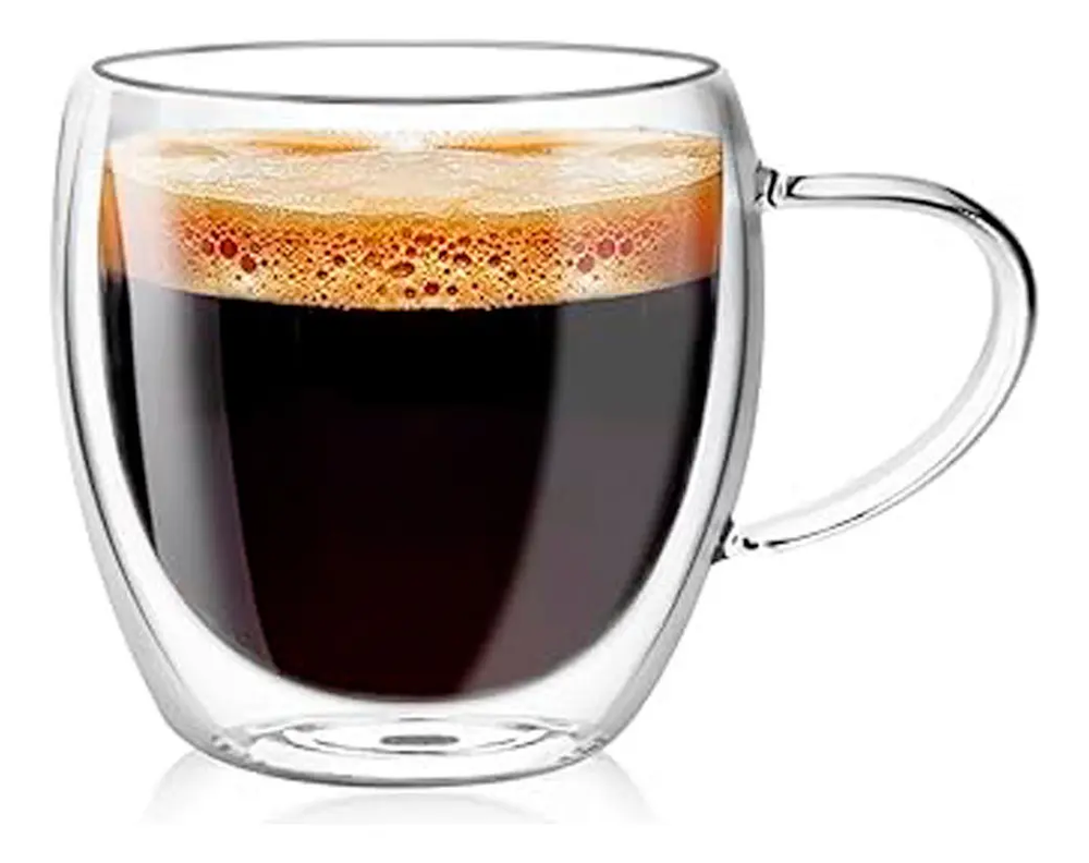 Taza Doble Pared Vidrio 150 Ml Transparente C/ Asa Agua Cafe Taza Doble Pared Vidrio 150 cc