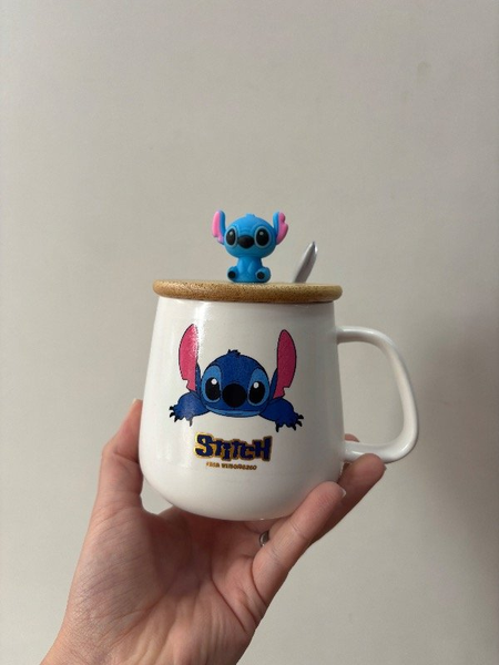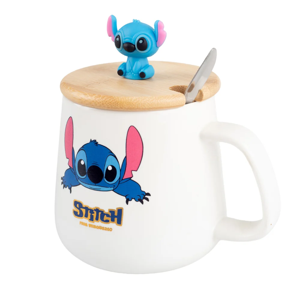 Taza Stitch con tapa bambú y cuchara