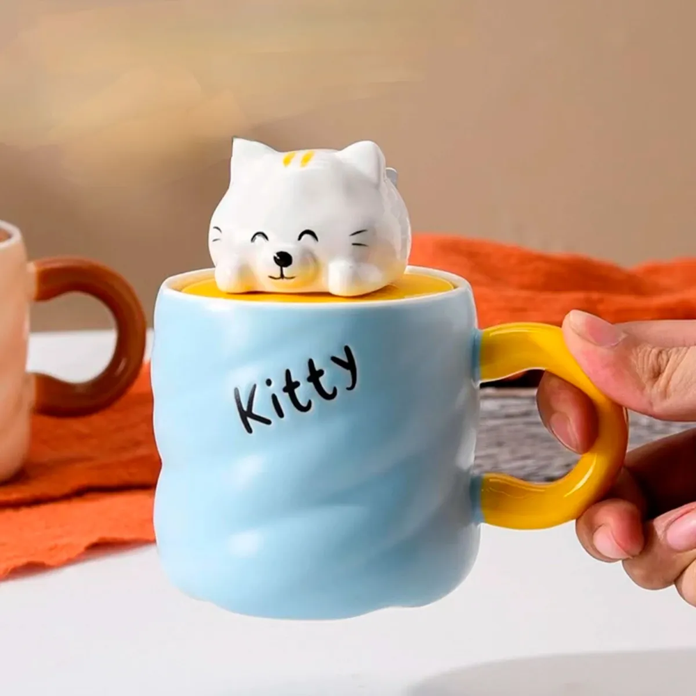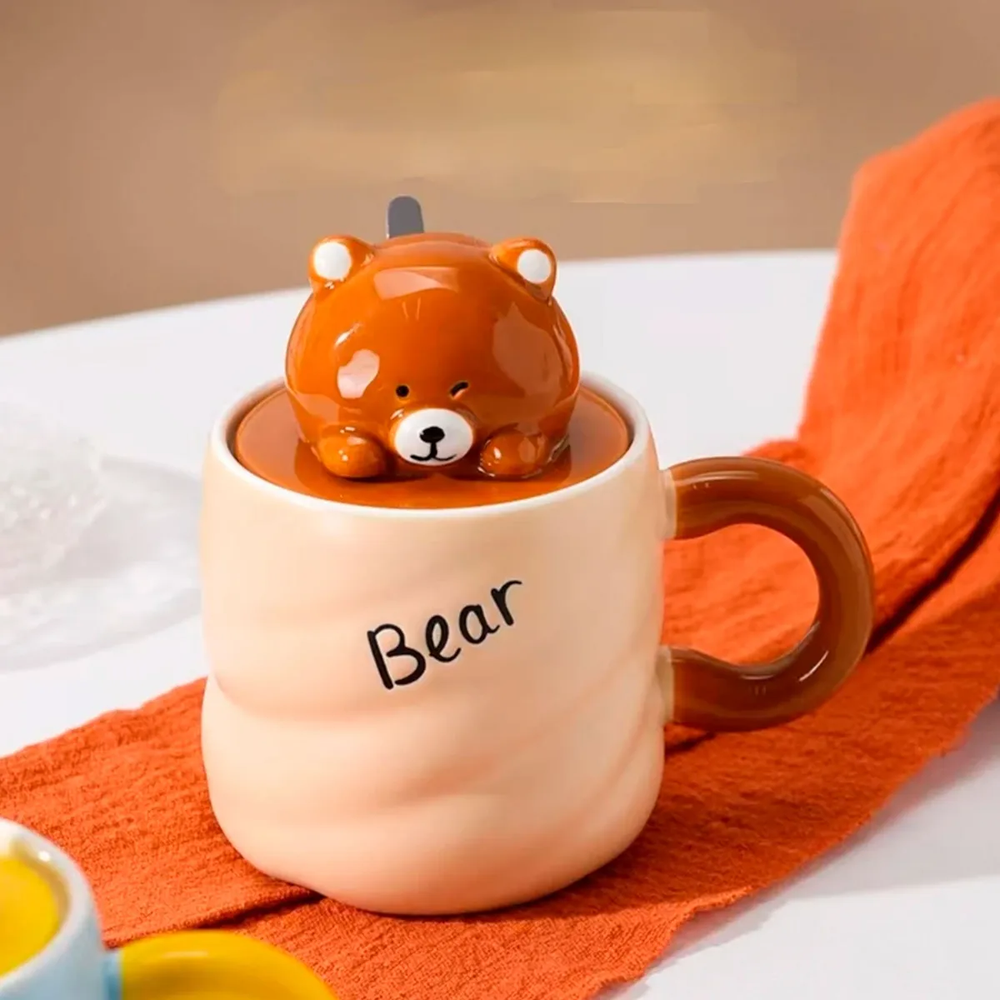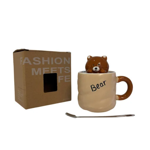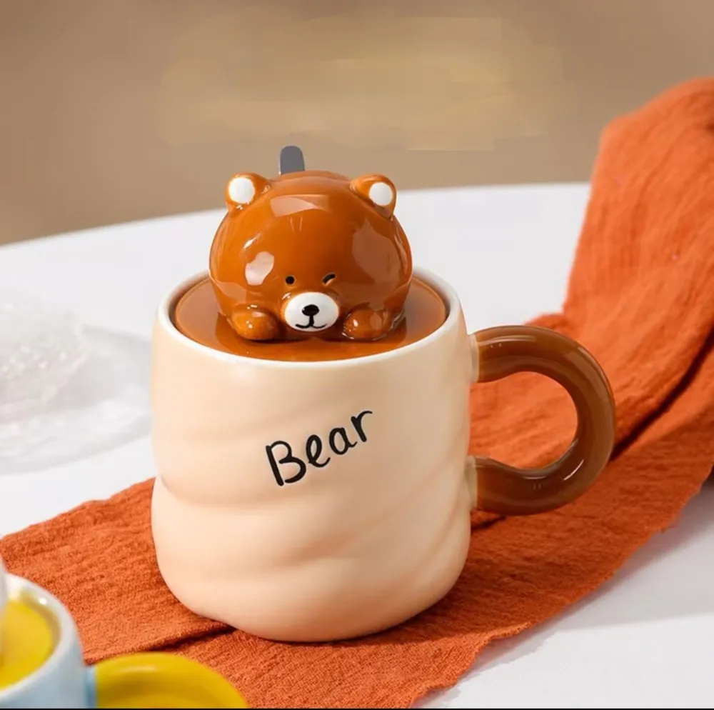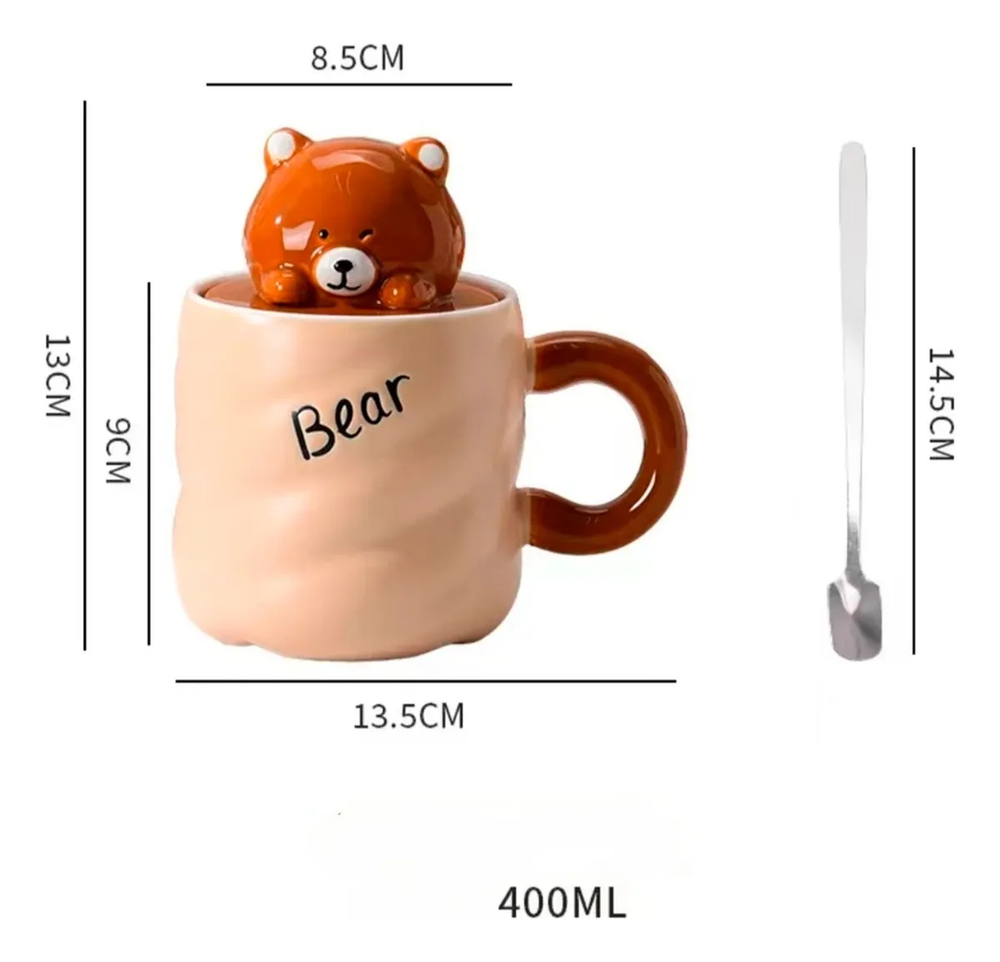 Hermosa taza modelo Oso, con tapa y cucharita incluida, perfecta para disfrutar tu café, té o chocolate favorito con mucho estilo.