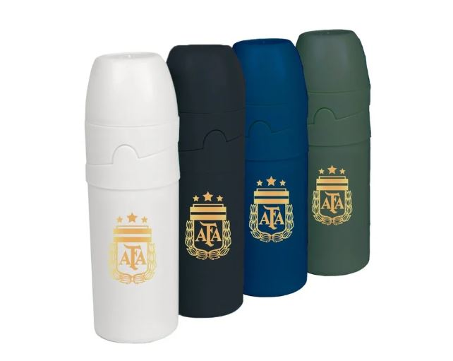 El Set Duet Yerbera Azucarera 2 En 1 Compacto y Encastrable AFA Oficial es el accesorio perfecto para los verdaderos fanáticos del fútbol que disfrutan de un buen mate. Diseñado para ofrecer la máxima comodidad y portabilidad, este set esencial combina dos contenedores en un solo cuerpo, permitiéndote llevar tu yerba y azúcar de forma práctica y organizada.