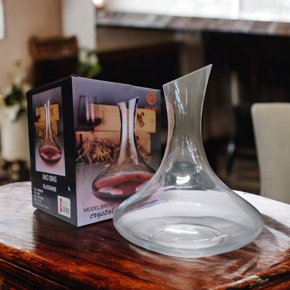 Decantador para vino modelo premium; cristal nacional. Presentación en caja impresa