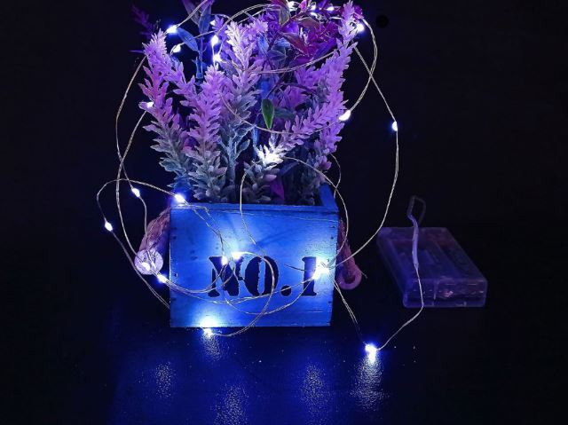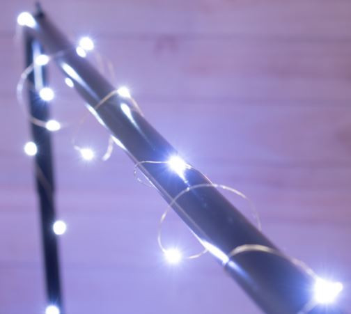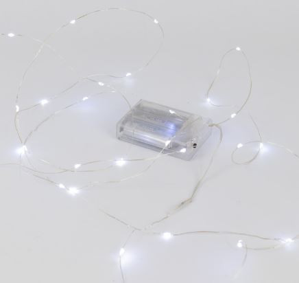 Luz en alambre Gotitas; 30 cab. Funciona con 3 pilas AA (no incluidas).