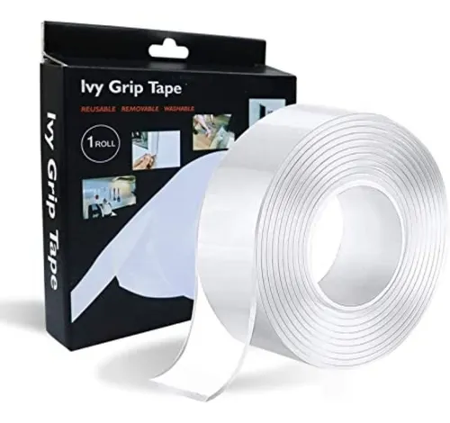 Cinta Doble Contacto Faz Transparente 2 metros Ivy Grip Tape Color Blanco. Ideal para adherir todo lo que necesites en las paredes sin la necesidad de clavos ni tornillos. Esta cinta es reutilizable, por lo que si ya no necesitas sostener el objeto o donde la hayas utilizado, simplemente se remueve, se lava y la puedes volver a usar donde necesites.