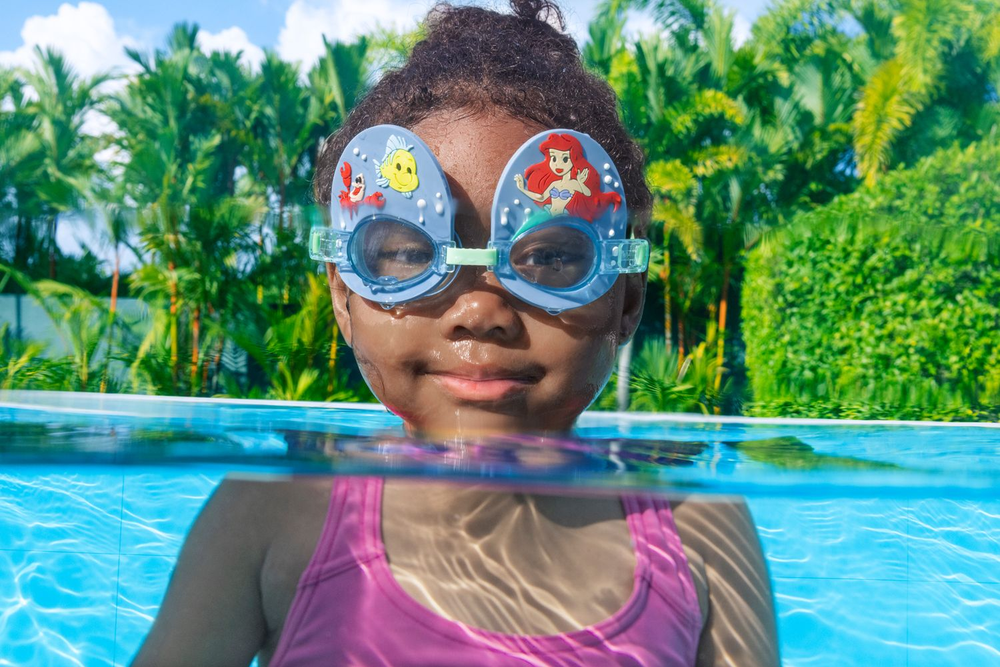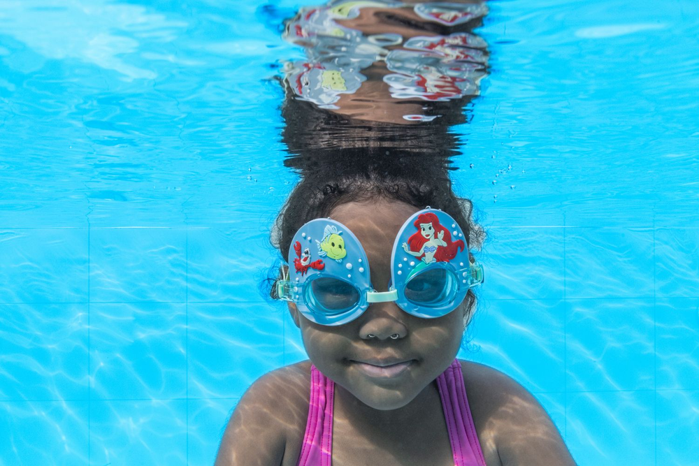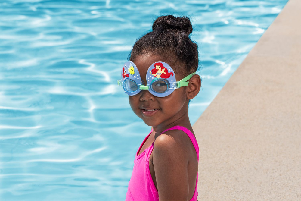 Gafas de natación de la colección Bestway, con diseño de la Sirenita, con lentes a prueba de golpes con protección UV para que los más pequeños estén protegidos de los rayos solares. Con ajuste cómodo y diadema fabricada en silicona. Recomendado a partir de 3 años.