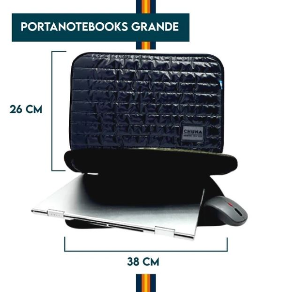Protege tu Notebook con estilo y practicidad. Portanotebook confeccionado en Sire, matelaseado, con guata, interior forrado en tela Silver