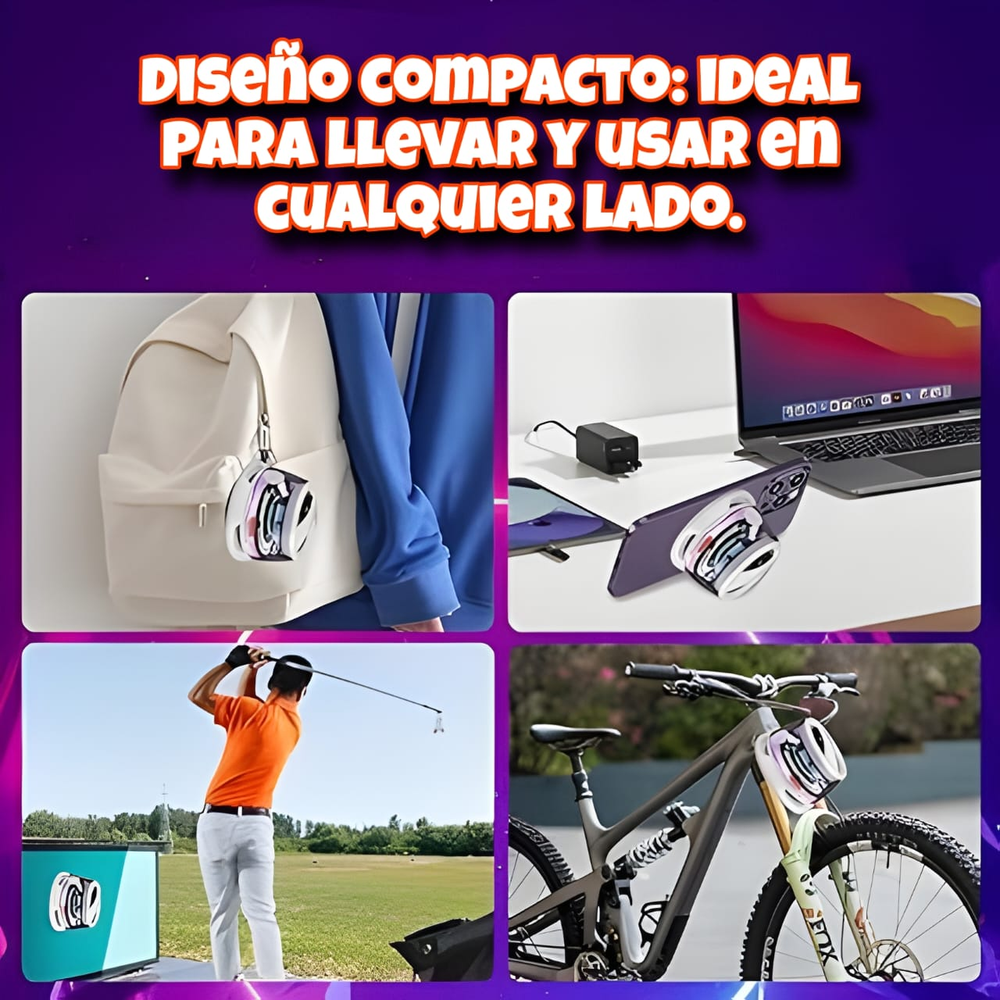 Llévalo siempre, úsalo donde quieras: Con tan solo 55 × 40 mm, se engancha al celular como soporte, al cuadro de la bici o a la pata de la mesa sin ocupar espacio. Activa tu playlist favorita, sube el volumen y… ¡listo! Aprovecha esta oportunidad y añádelo al carrito ahora mismo: la próxima aventura merece un sonido a la altura.