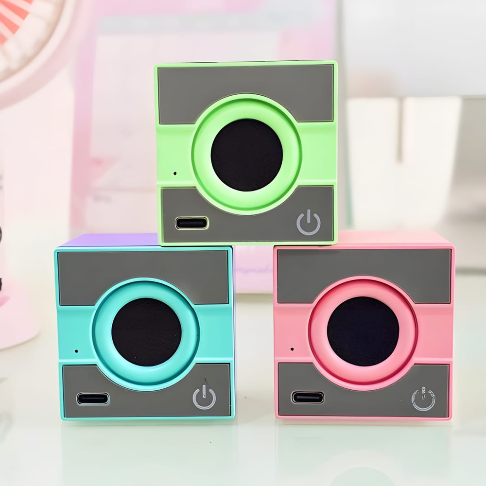 Parlante bluetooth mini portátil, altavoz cubo 3 W, parlante USB-C pastel, speaker inalámbrico compacto, parlante con micro-SD y AUX, mini altavoz colores.
