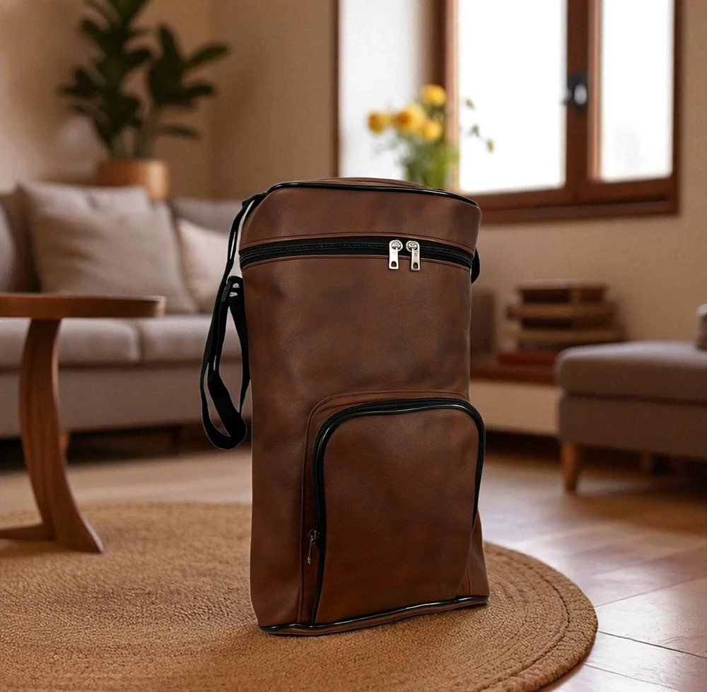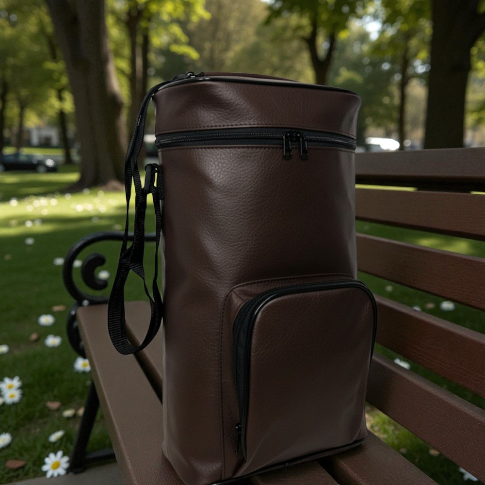 Práctica y elegante matera confeccionada en eco-cuero resistente, ideal para transportar todo lo necesario para el mate. Sus medidas de 38 x 21 x 12 cm ofrecen espacio suficiente para llevar termo, mate y accesorios. Incluye bolsillo frontal con cierre, perfecto para organizar yerba, azúcar o pequeños objetos.