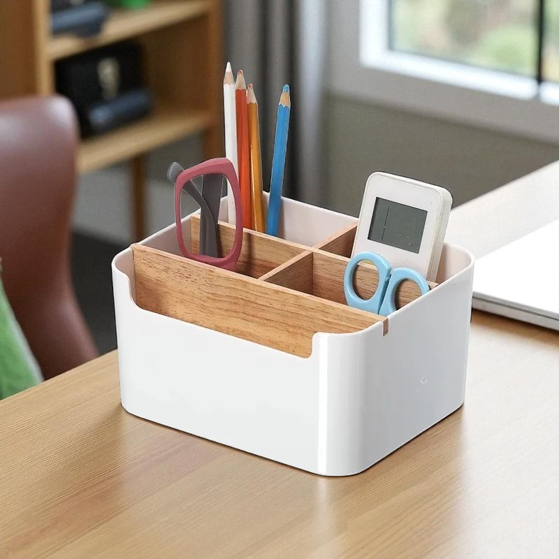 ORGANIZADOR DE PLASTICO CON DIVISION EN BAMBU (5 ESP) HOUSTON 5 Ayuda a mantener el orden y la decoracion en diferentes ambientes. Ideal para distintos tipos de objetos y darle un toque de calidez al hogar.