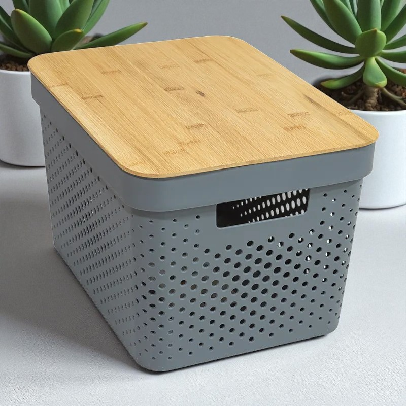 CAJA DE PLASTICO CON TAPA BAMBU NORDICA (L) OSLO