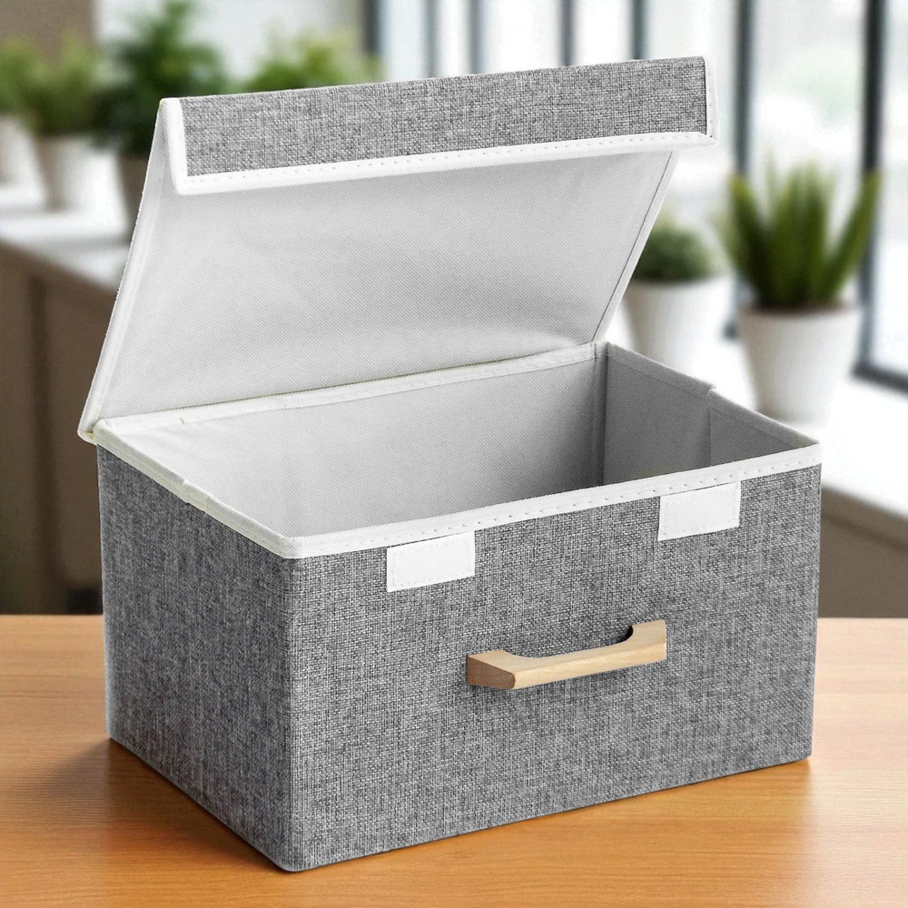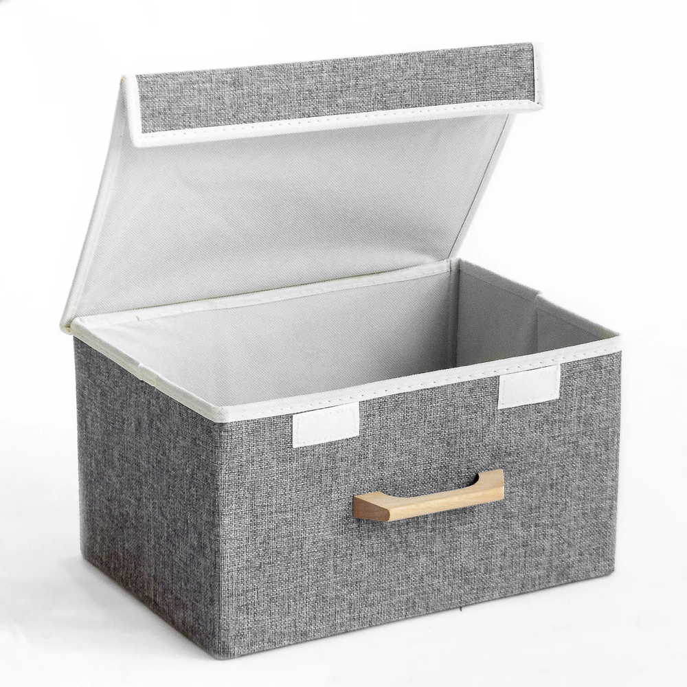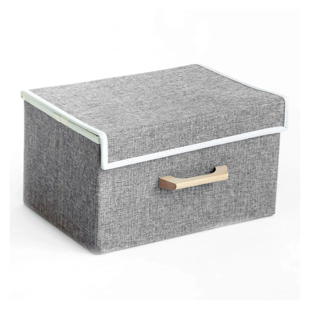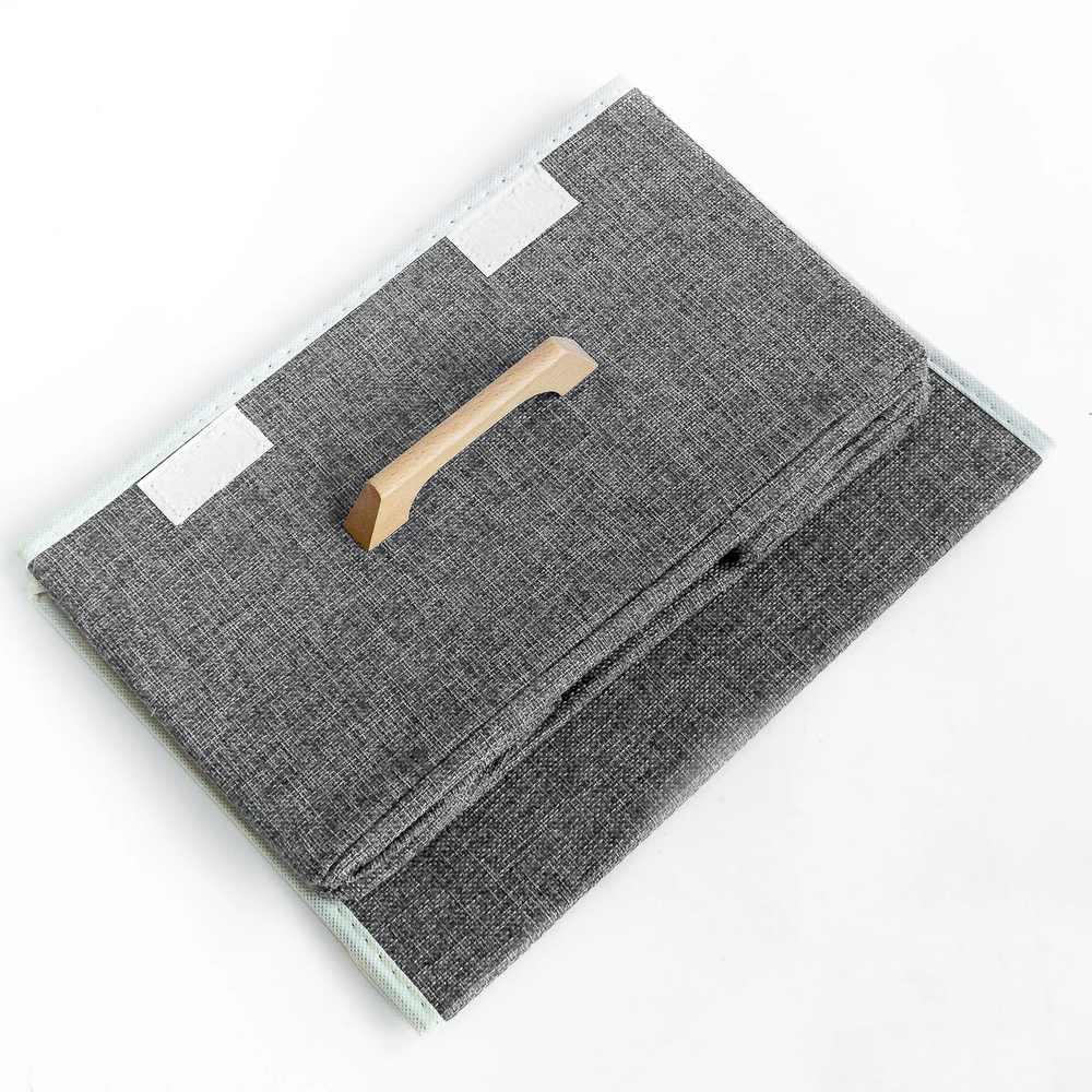 CAJA PLEGABLE FORRADA EN LINO MANIJA DE MADERA (S) NIZA DARK GREY