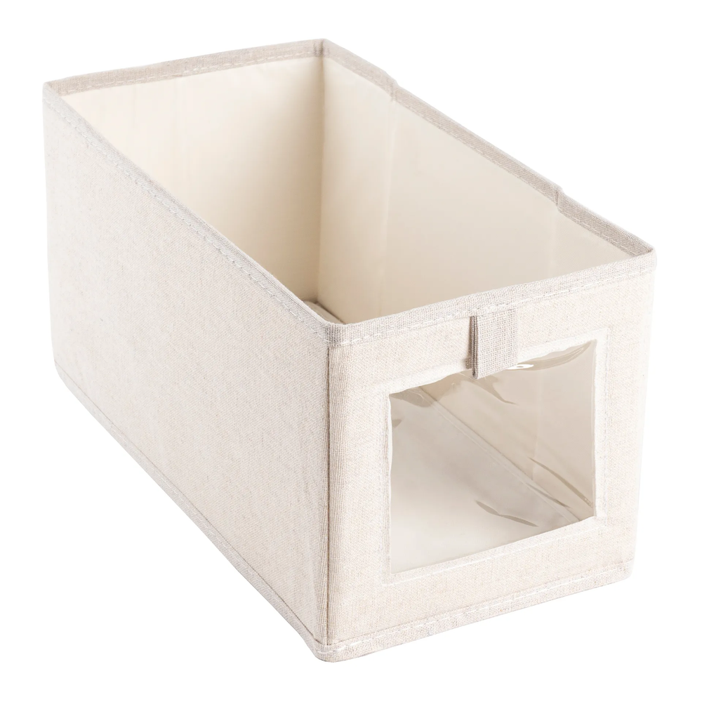 CAJA PLEGABLE FORRADA EN TELA VENTANA TRANSPARENTE (S) AMIENS Cada colección refleja nuestros valores fundamentales de Sostenibilidad, respeto por el medio ambiente y producción ética con diseños estéticos y funcionales.