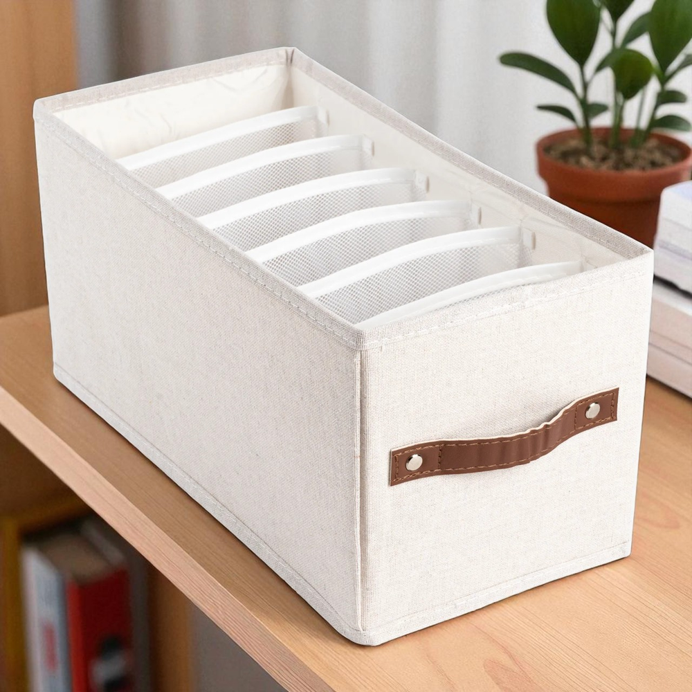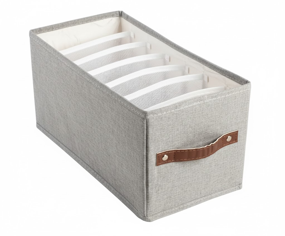 027-6N CAJA PLEGABLE FORRADA EN TELA MANIJA DE CUERO /7 (M) Cada colección refleja nuestros valores fundamentales de Sostenibilidad, respeto por el medio ambiente y producción ética con diseños estéticos y funcionales.