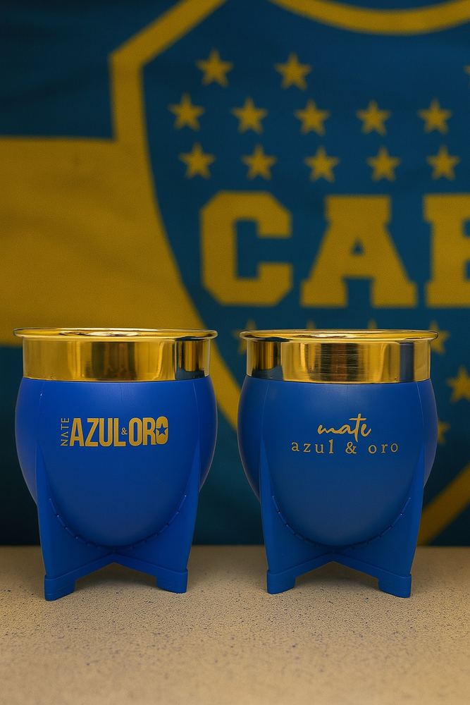 El mate ideal para los hinchas de Boca. Hecho en PVC resistente, con diseño estilo imperial y virola en color azul y dorado, es práctico, cómodo y lleno de pasión xeneize. Su forma amplia lo hace perfecto para largas rondas, mientras que su diseño refleja el amor por los colores.