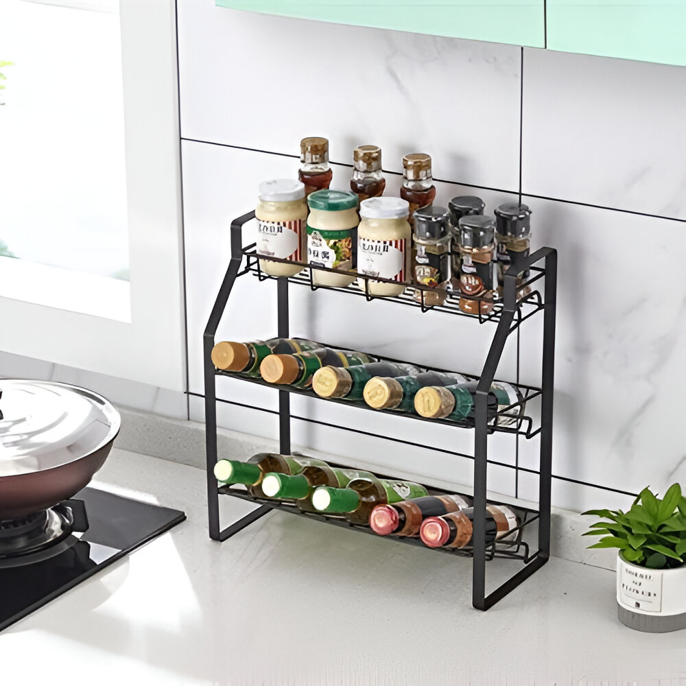Ofrece 3 niveles de almacenamiento, ideales para acomodar especias, frascos o botellas, asegurando fácil acceso y visibilidad de los productos.