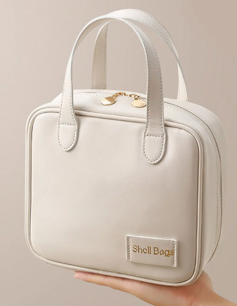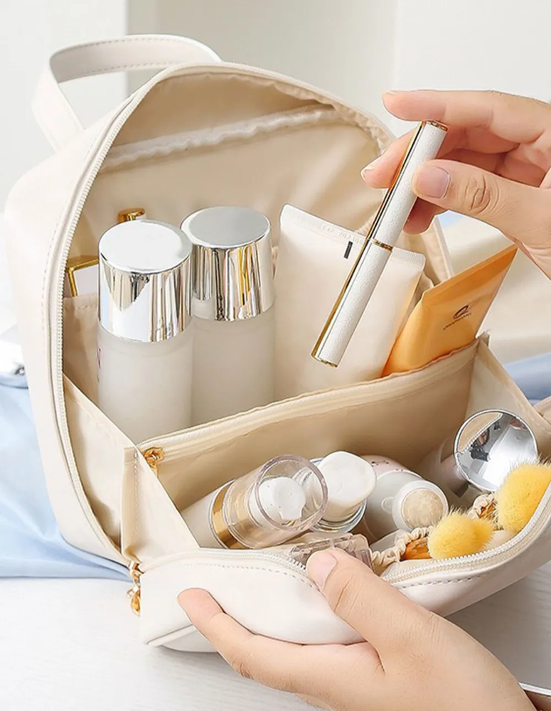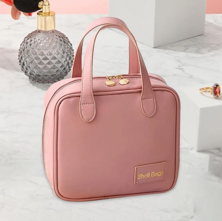 Cuenta con un bolsillo interno con cierre, divisiones internas, manijas y doble cierre.
