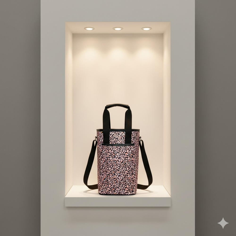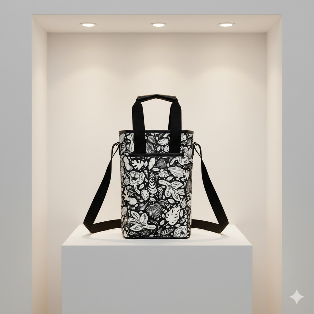 Bolso matero confeccionado en resistente tela cordura, con detalles en ecocuero que le dan un toque moderno y elegante. Su interior está completamente forrado con tela impermeable, ideal para proteger el contenido de posibles derrames. Cuenta con una práctica división interna que mantiene el termo en posición vertical, evitando caídas. Incorpora doble sistema de transporte: manija reforzada y correa para colgar al hombro, ideal para quienes lo llevan a la oficina, al parque o de paseo. Perfecto para mostrar en vidriera colgado o de pie, y muy visual para tiendas online gracias a su diseño atractivo.