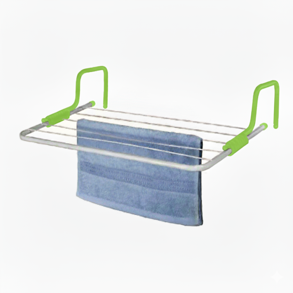 MEDIDAS: 60x30cm // MATERIAL: Metal pintado // 3 metros de colgado de ropa // Ajustable a paredes; ventanas; balcones; puertas; estufas; bañeras; etc