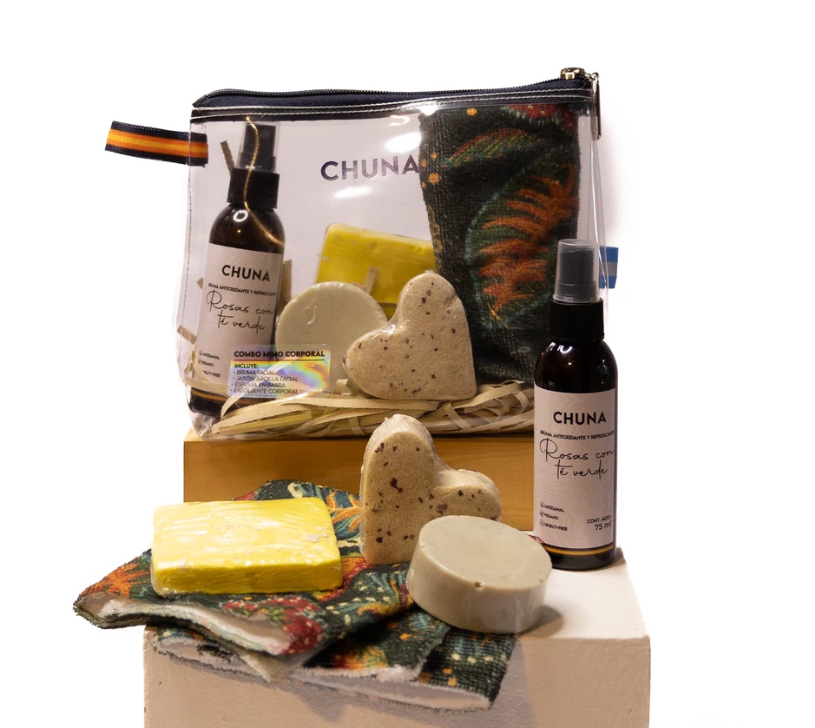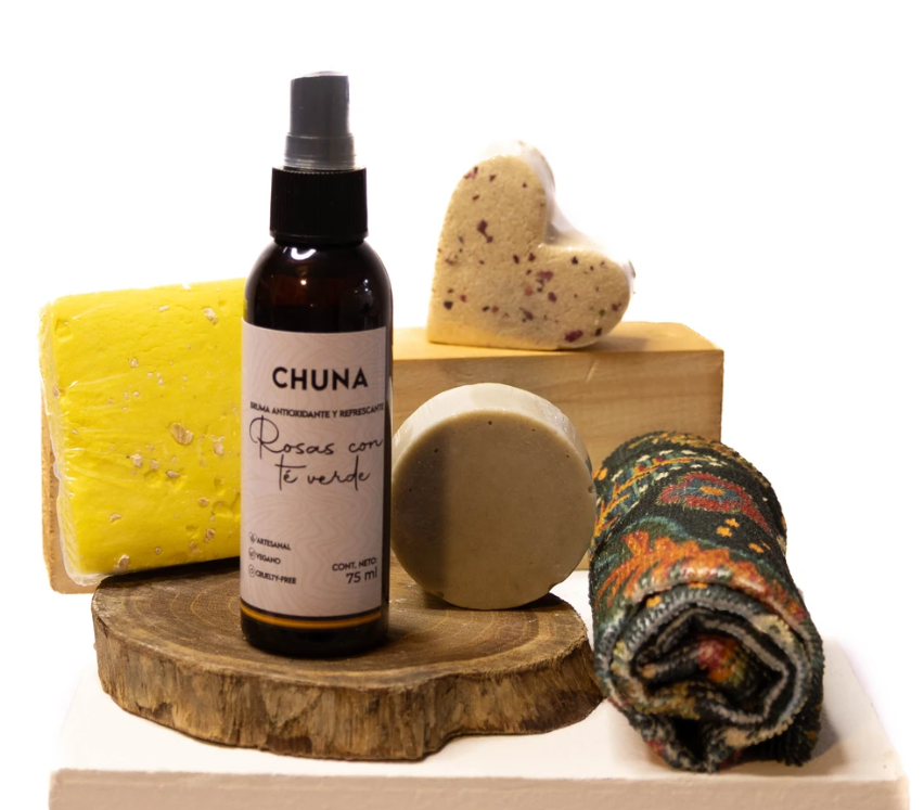 Incluye: Bruma Facial, Jabón arcilla facial, Espuma en barra Exfoliante corporal, Toalla de mano