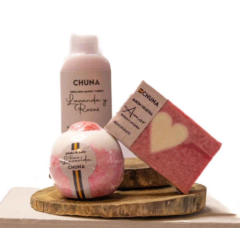 Incluye: Crema de manos y cuerpo, Jabón corporal, Bomba de baño