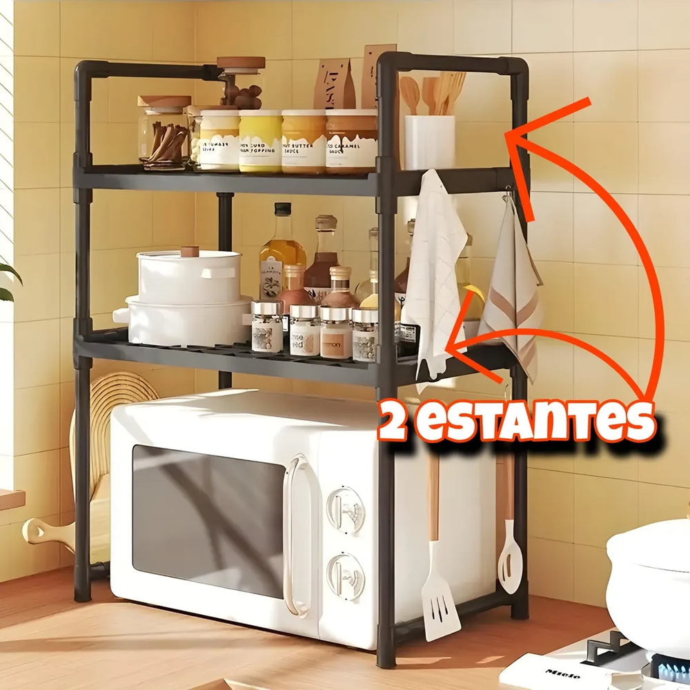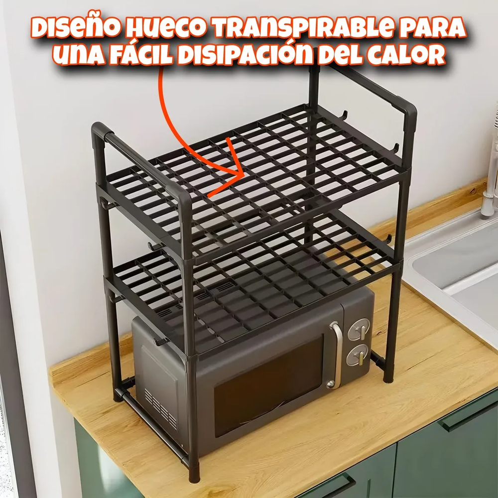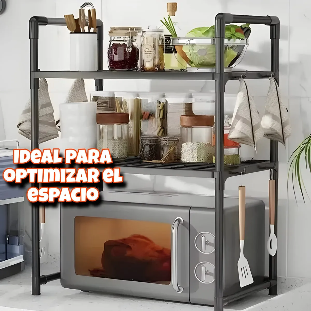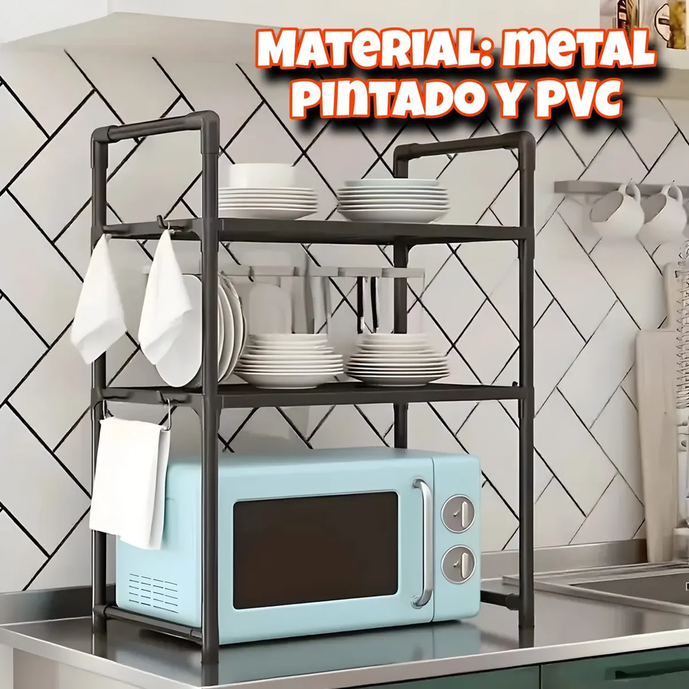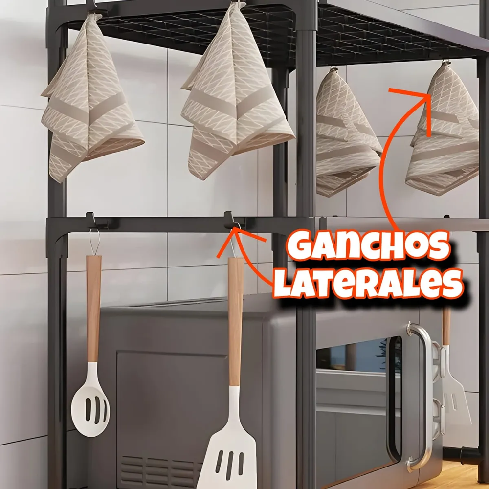Estante organizador para microondas – 3 niveles con ganchos laterales