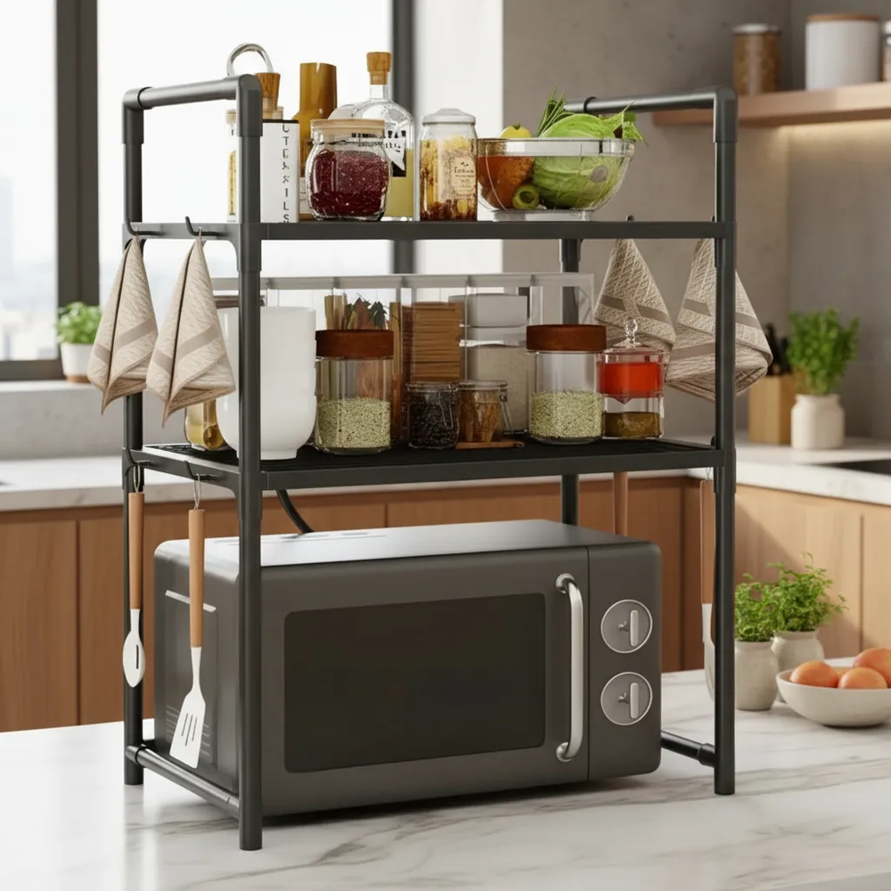 ¿Querés una cocina despejada y funcional todos los días? Sumalo al carrito hoy y optimizá cada centímetro de tu encimera. Perfecto como soporte de microondas, repisa para horno eléctrico o freidora de aire, y organizador multiuso.