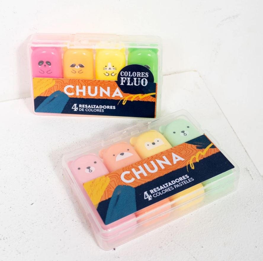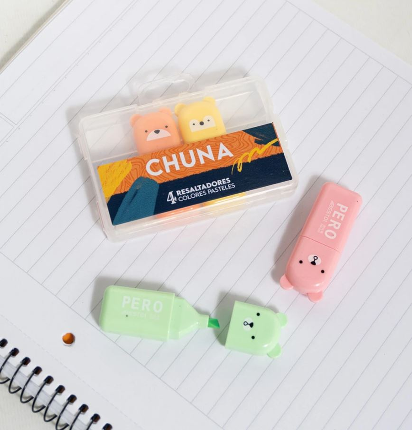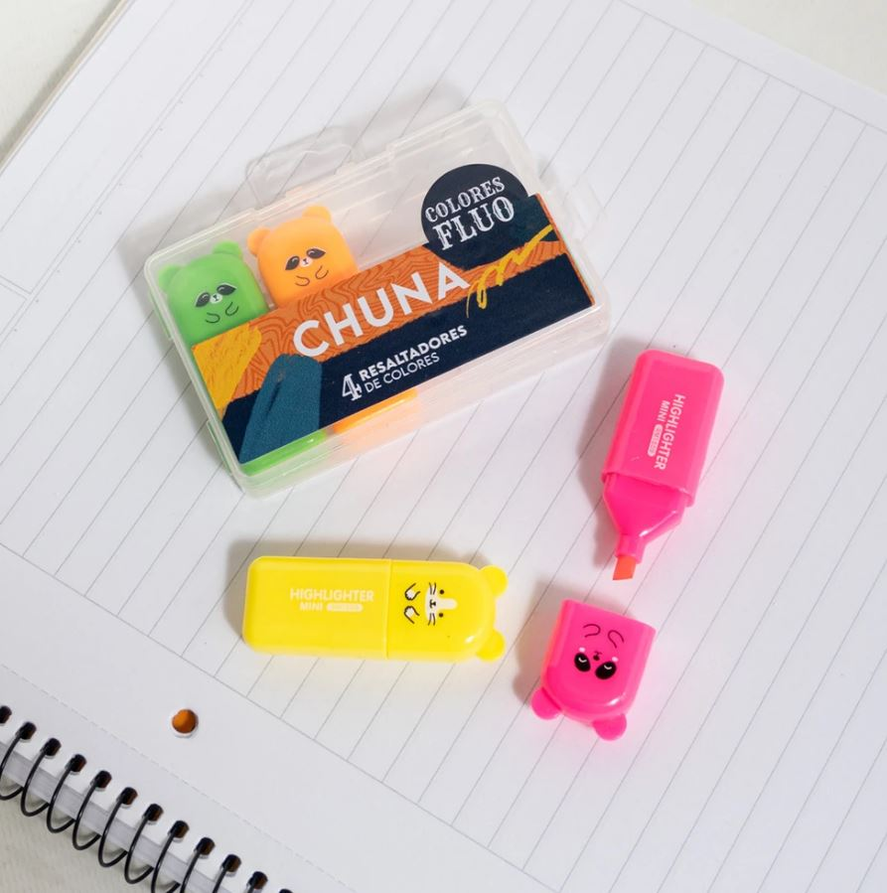 Set de resaltadores en caja El set contiene 4 mini resaltadores con diseño de animalitos