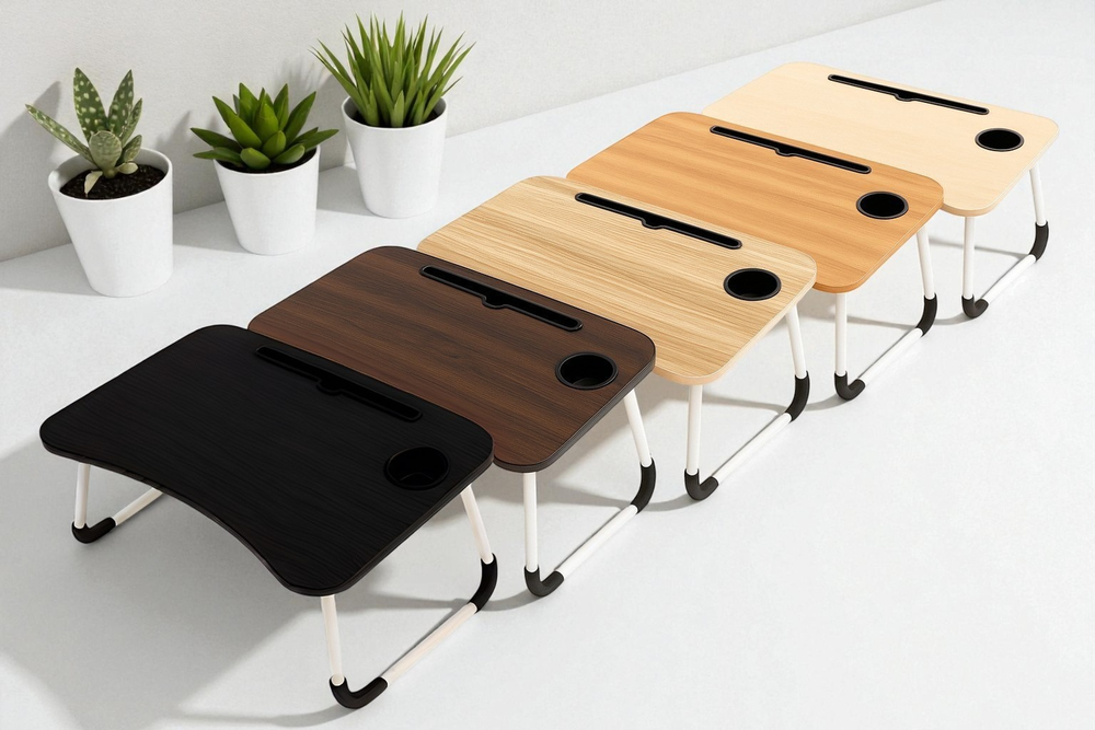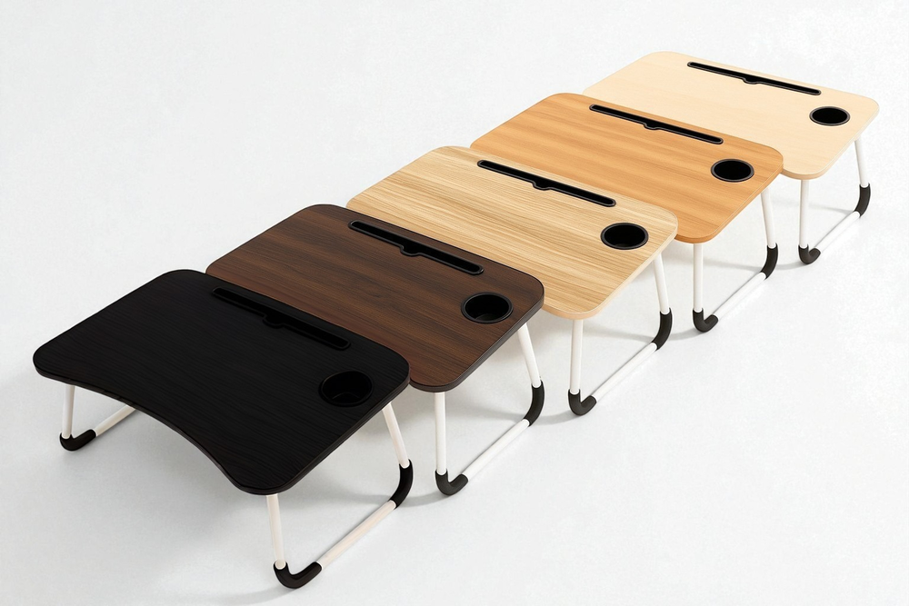 El pack incluye una mesa de cada color (beige, beige oscuro, madera, marron oscuro y negro)