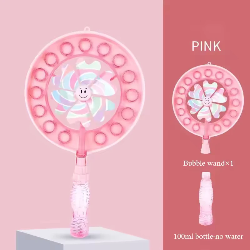 Incluye: 1 varita burbujero con molino del viento, 1 recipiente para el líquido jabonoso. Las instrucciones de uso se encuentran en el empaque del producto.