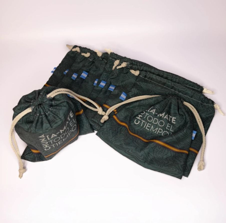 Bolsa packaging confeccionada en lienzo Medidas Alto 20cm, Ancho 19cm con cordón Tamaño ideal para guardar mates regionales del estilo camionero