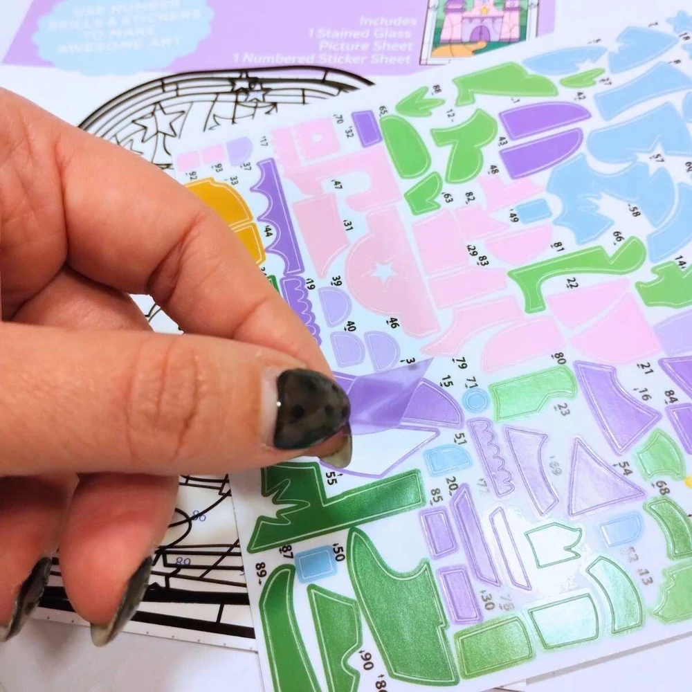 Kit de Vitral con Sticker - Castillo Simplemente pega las pegatinas siguiendo los números de muestra en la parte posterior del paquete para crear hermosas obras de arte estilo vitral. Contiene pegatinas transparentes de diferentes colores, lo que te permite crear una obra de arte con un solo patrón. ¡Puedes exhibir el producto terminado!