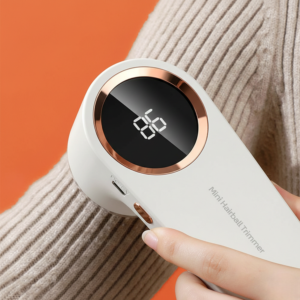 Quitapelusas recargable via USB (Cable tipo C Incluido) Con Display LED indicador de nivel de bateria.