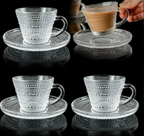 Set x 6 tazas de cafe con plato estilo vintage, Presentacion en caja