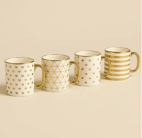 Taza de cerámica con 4 diseños surtidos. Resistente, apta para microondas y fácil de limpiar, perfecta para el hogar o la oficina. Ideal también como regalo. Medida: 9.5×7.5 cm