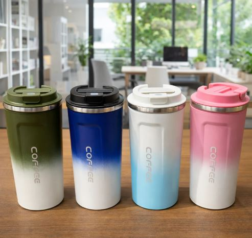 Vaso térmico reutilizable, cómodo para llevar y usar en casa, oficina o viajes. Diseño moderno y funcional. Capacidad; 500 ml PRESENTACION: Caja impresa