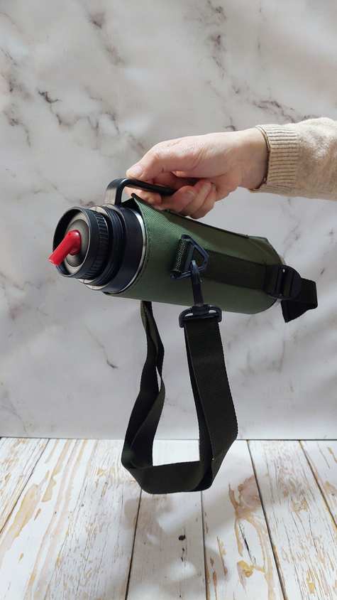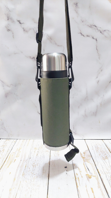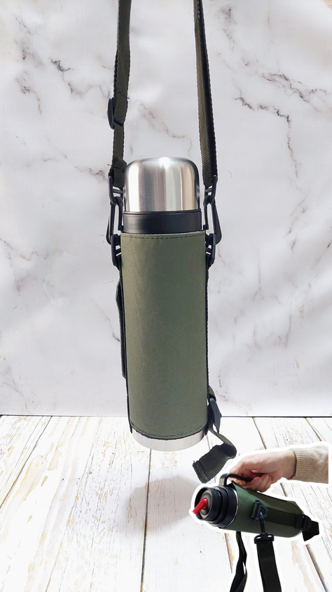 Funda de termo de tela cordura. Correa ajustable para transportarlo Porta termo material cordura diseño Tira regulable desmontable CIERRE VELCRO