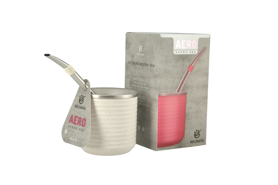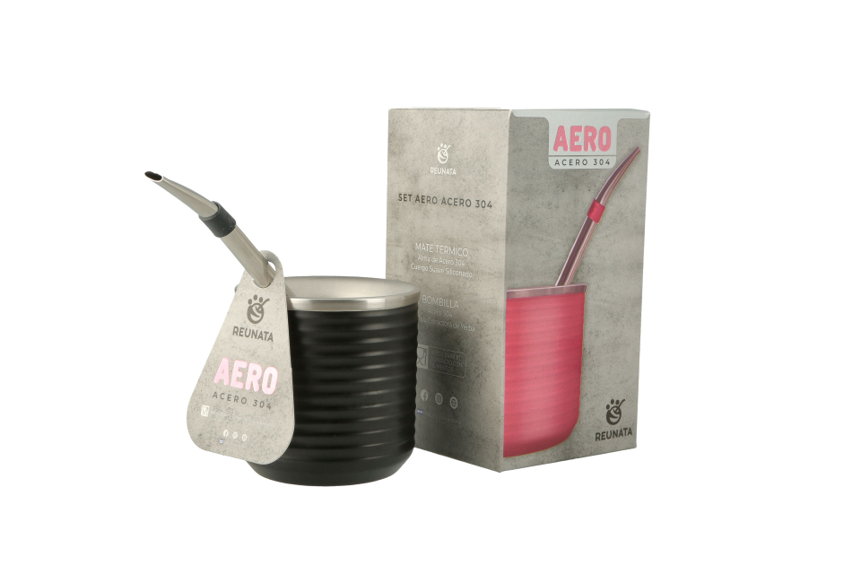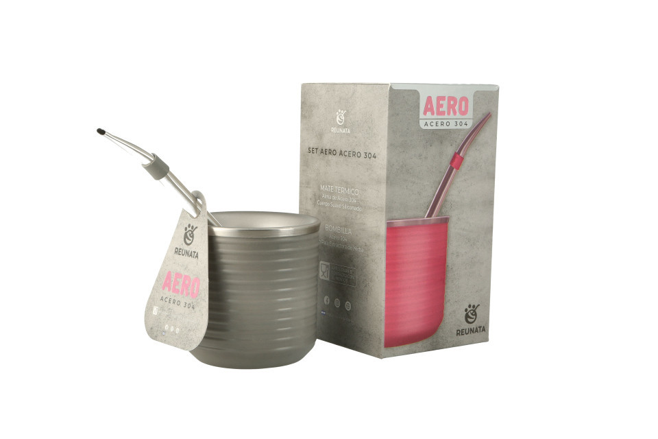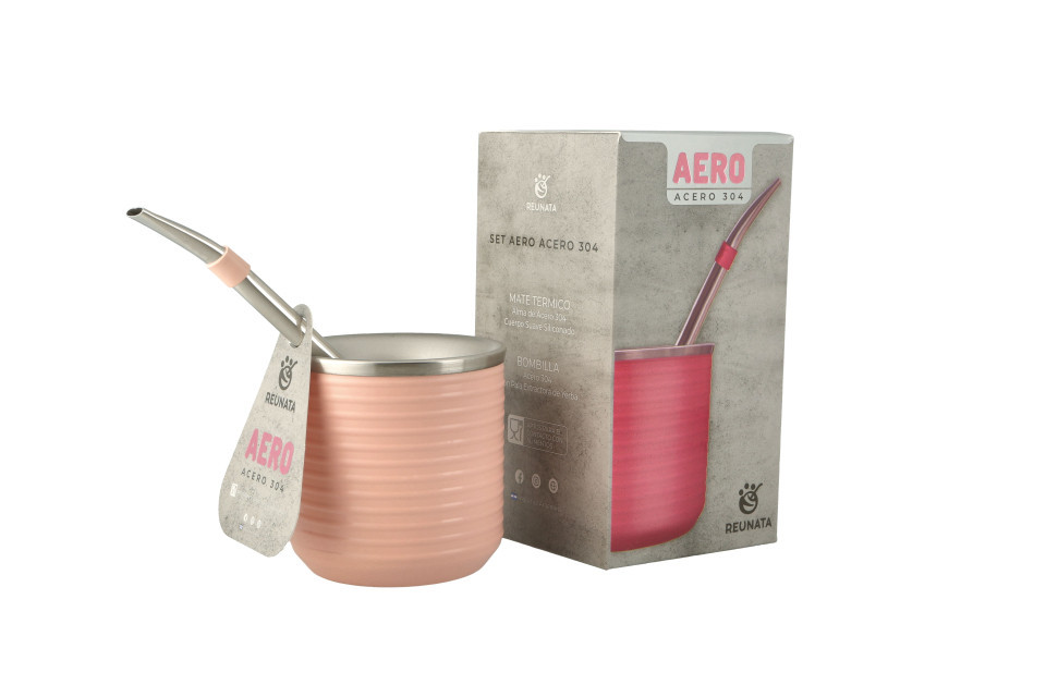 Set Mate Aero Acero 304 Ideal para unas rondas de mate modernas. Mates PREMIUM de acero con diseño minimalista. Una sensación única al tacto por su suavidad y comodidad de agarre. El acero utilizado, en conjunto con el exterior con cuerpo siliconado, permite mantener el contenido caliente. No se tapa la bombilla, y cuenta con la capacidad ideal para no desperdiciar yerba. Además, se lava de manera fácil y práctica.