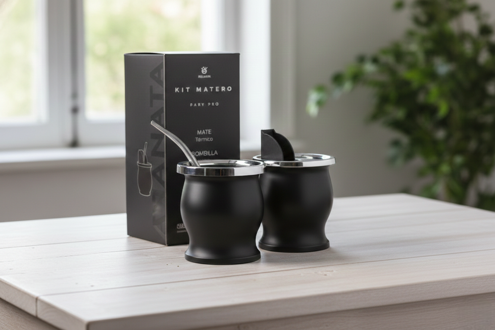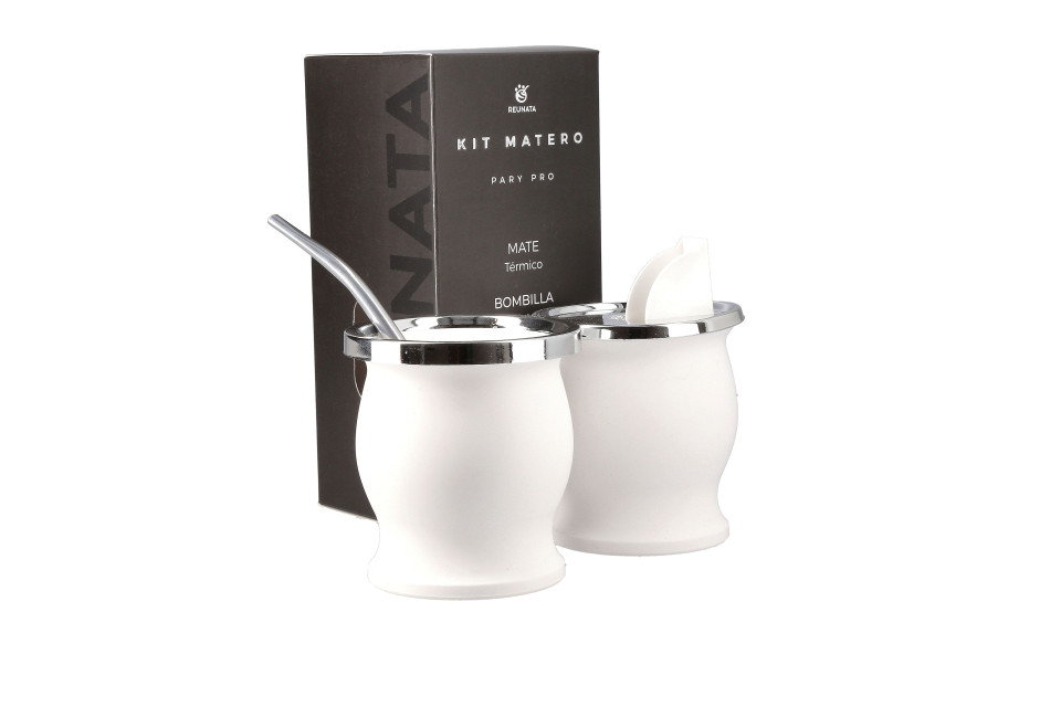 Presentación: Kit con packaging incluido en Caja. Características del producto: Apto alimentos (Polipropileno) Mate: Doble pared, aísla la temperatura Bombilla color: Aluminio pintada plateado con resorte niquelado