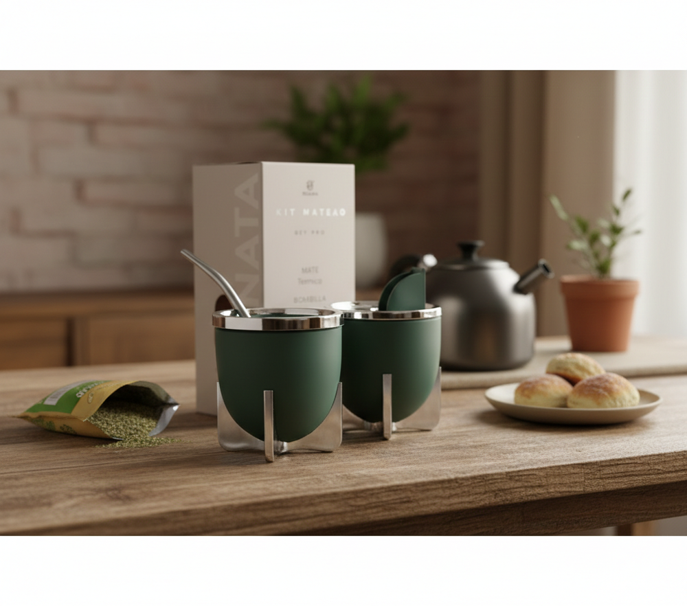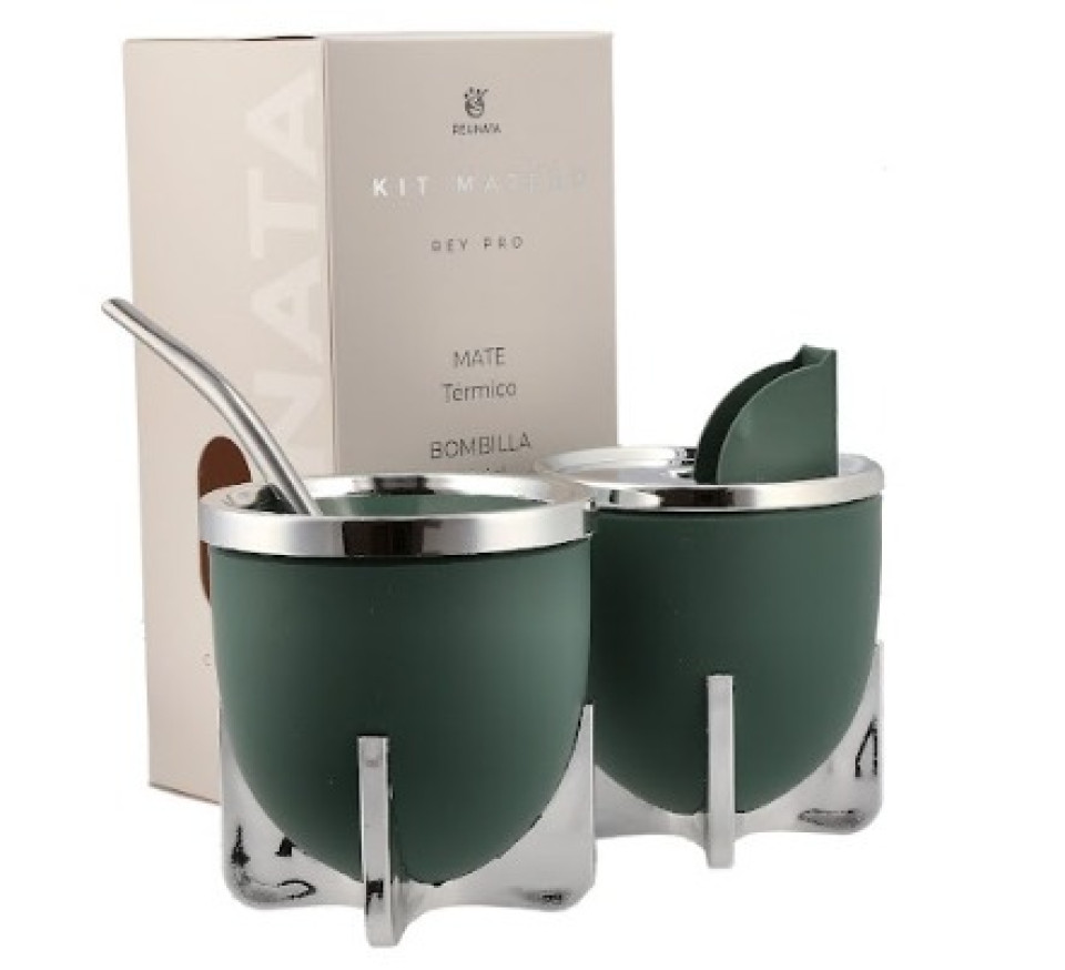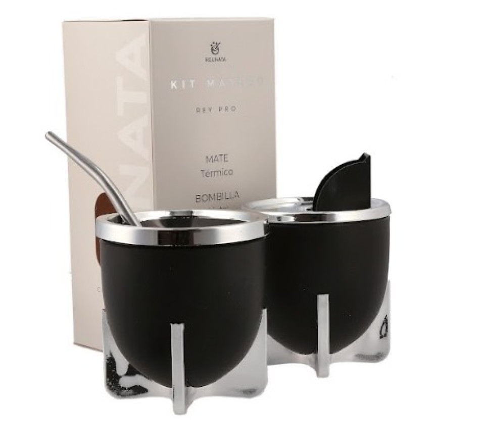 Presentación: Kit con packaging incluido en Caja. Características del producto: Apto alimentos (Polipropileno) Mate: Doble pared, aísla la temperatura Bombilla color: Aluminio pintada plateado con resorte niquelado