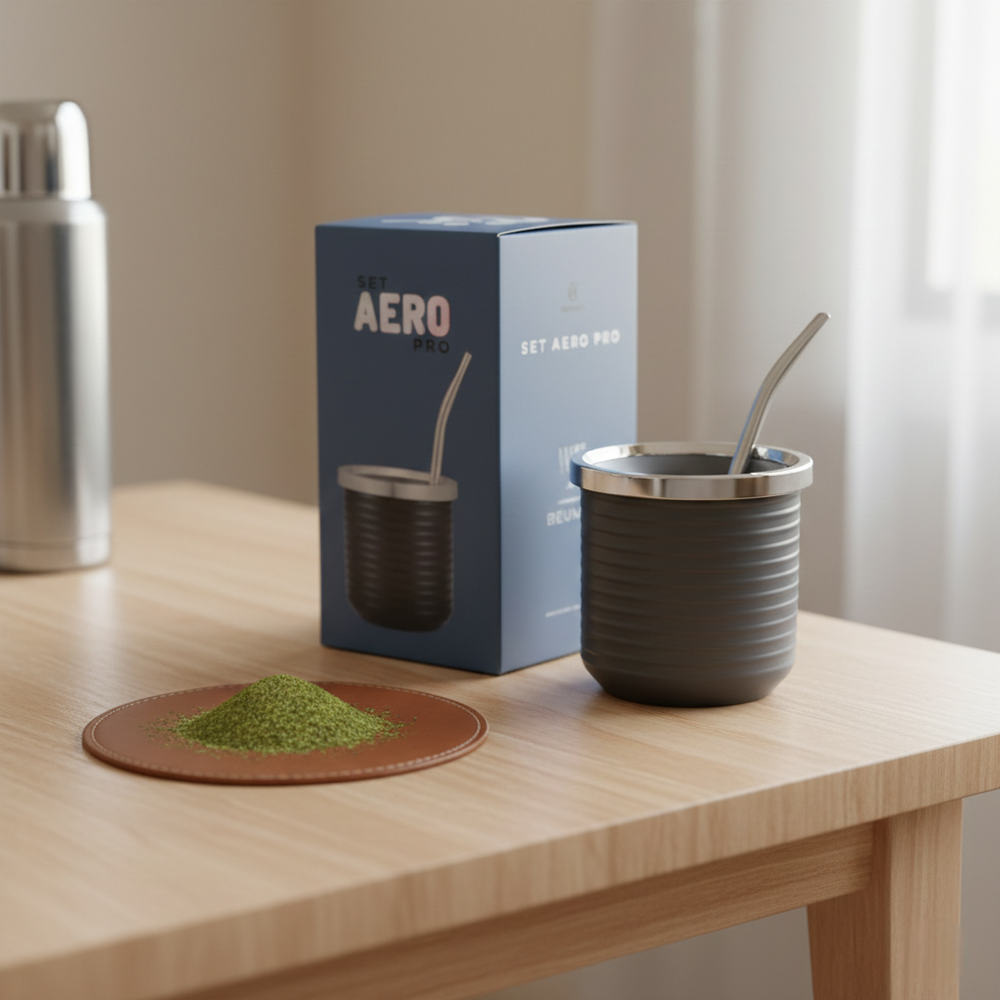 Presentación: Kit con packaging incluido en Caja. Características del producto: Apto alimentos (Polipropileno) Mate: Doble pared, aísla la temperatura Bombilla color: Aluminio pintada plateado con resorte niquelado