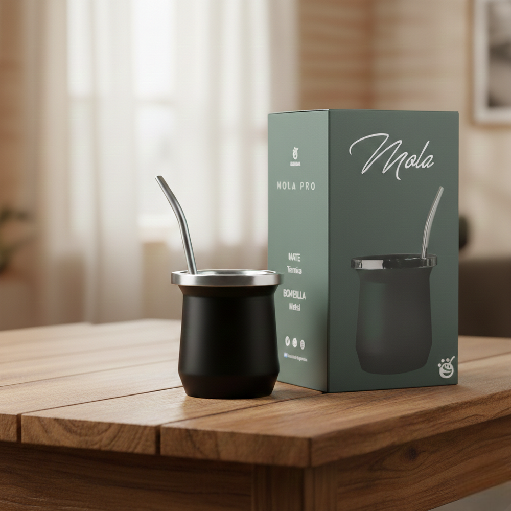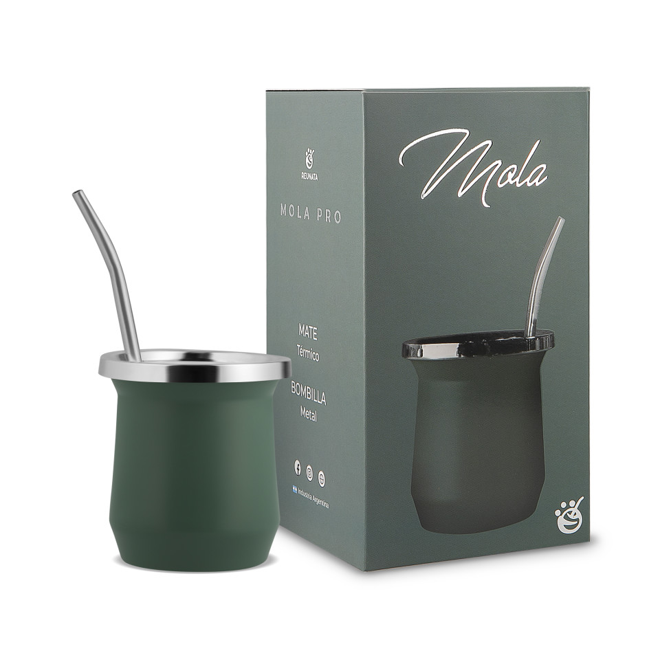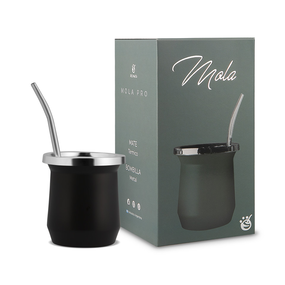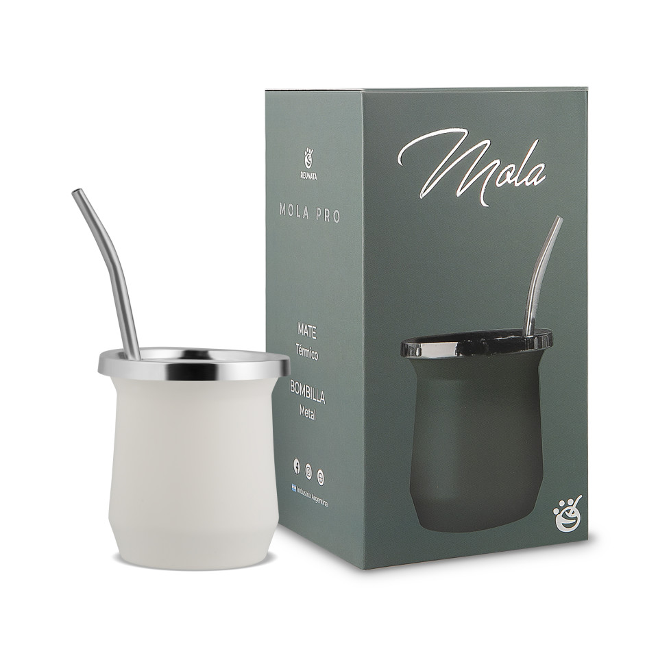 Presentación: Set con packaging incluido en Caja. Características del producto: Apto alimentos (Polipropileno) Mate: Doble pared, aísla la temperatura Bombilla color: Aluminio pintada plateado con resorte niquelado