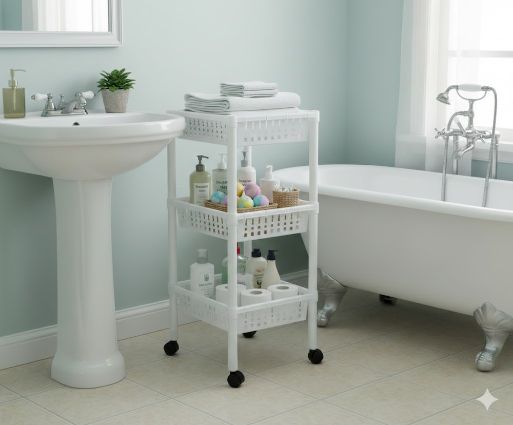 Bandejas: Contiene 3 bandejas de plástico liso, además de un nicho con fácil acceso que promueve la funcionalidad al organizar / acomodar productos y accesorios;