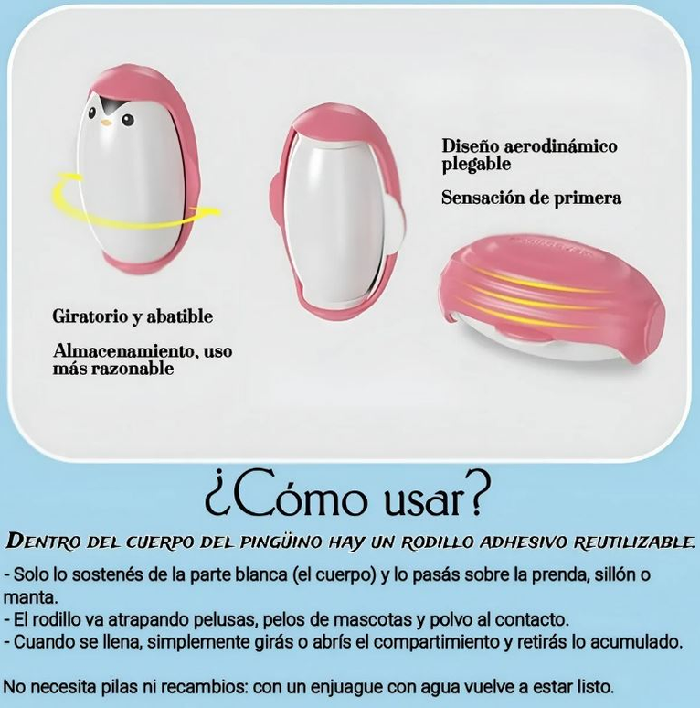 Rodillo Saca Pelusas Reutilizable con Diseño de Pingüino