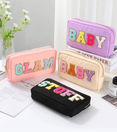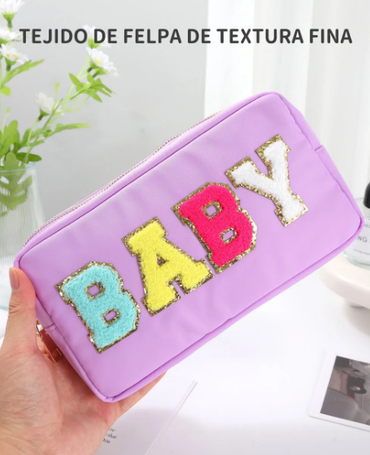 Portacosmetico con letras bordadas