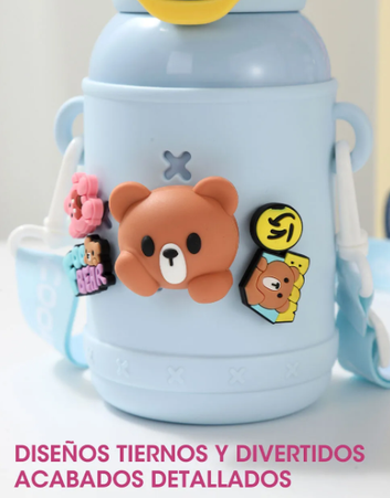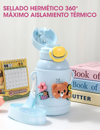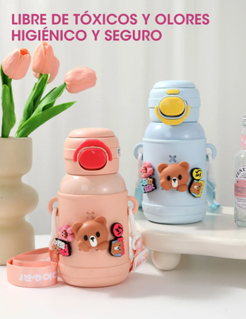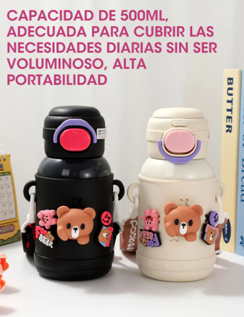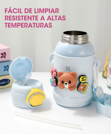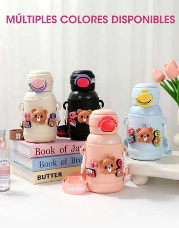 Botella térmica infantil con diseño adorable de osito, ideal para uso diario en casa, escuela o salidas