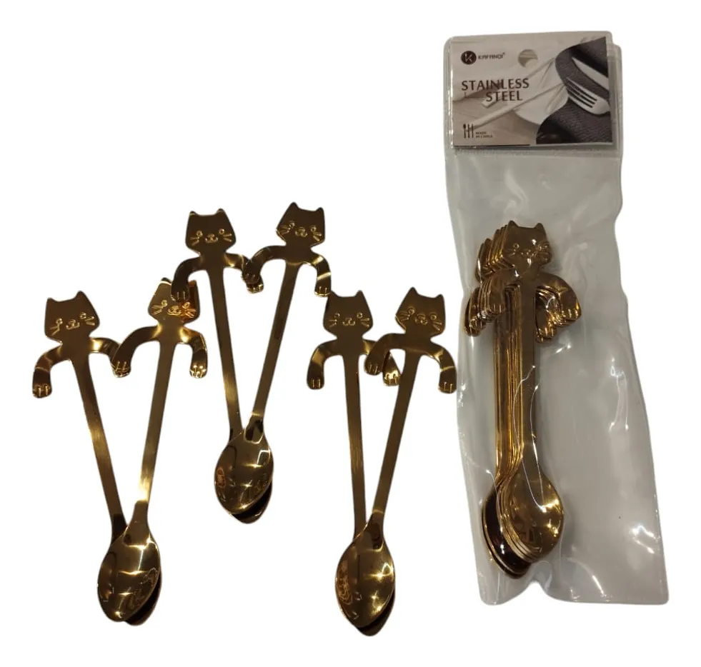Cuchara De Te Café Postre Acero Dorada Pack X6