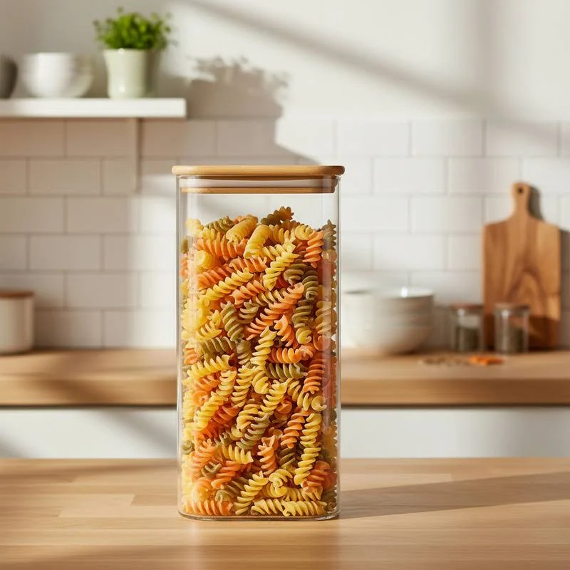 Un equilibrio perfecto entre estilo y funcionalidad. Este elegante frasco de vidrio transparente con tapa cuadrada de bambú natural aporta un toque minimalista y sofisticado a tu cocina o despensa. Ideal para almacenar granos, café, té o snacks, manteniendo todo fresco