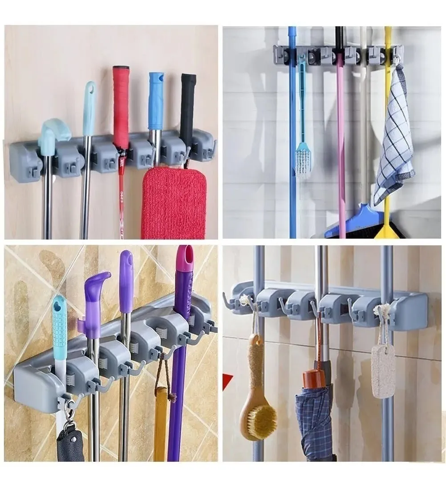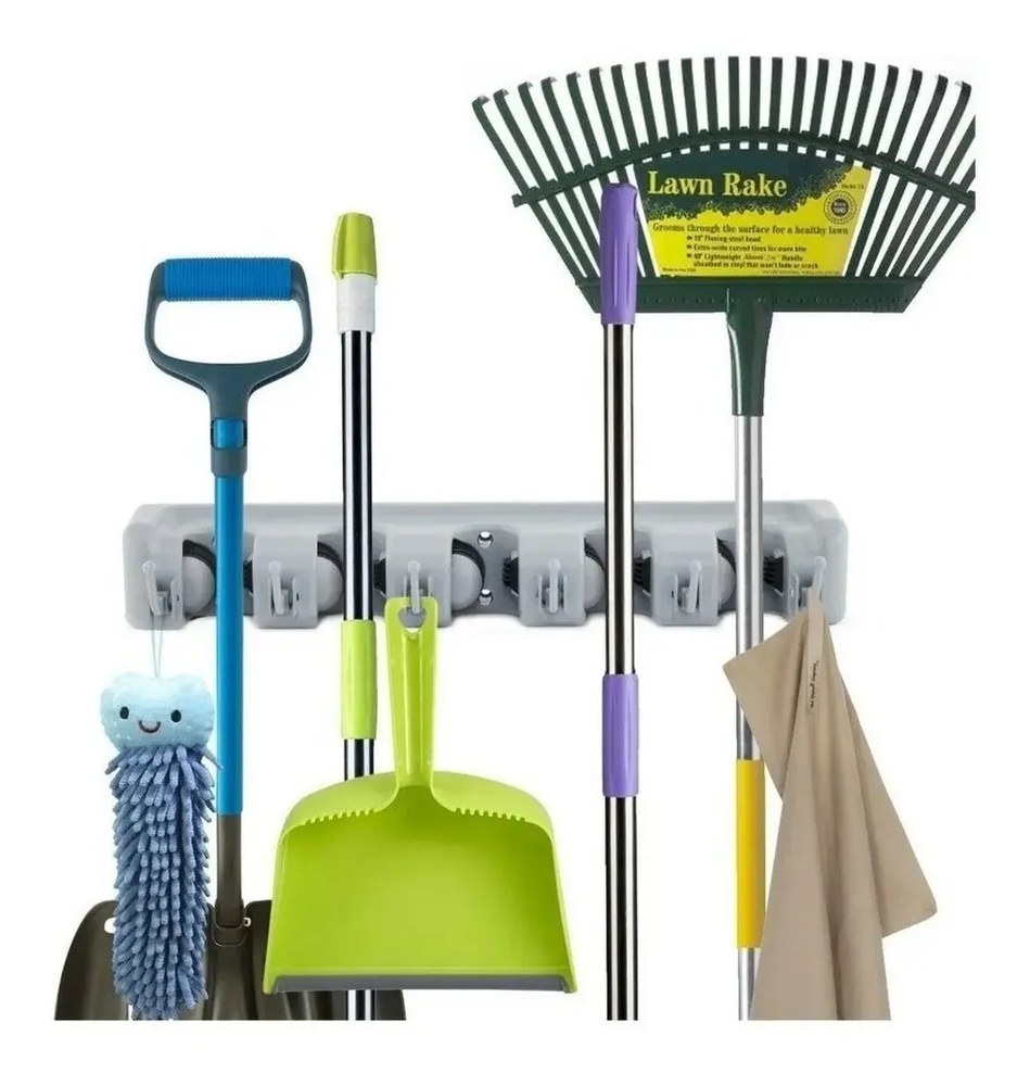 Organizador Cuelga Escobas con 4 Ranuras - Mantiene tus productos de limpieza de forma ordenada - ¡Ahorra espacio en tu hogar! Cómodo, practico y resistente organizador para que tengas todo al alcance de tu mano.